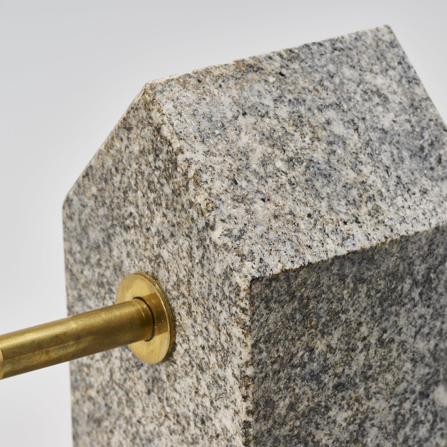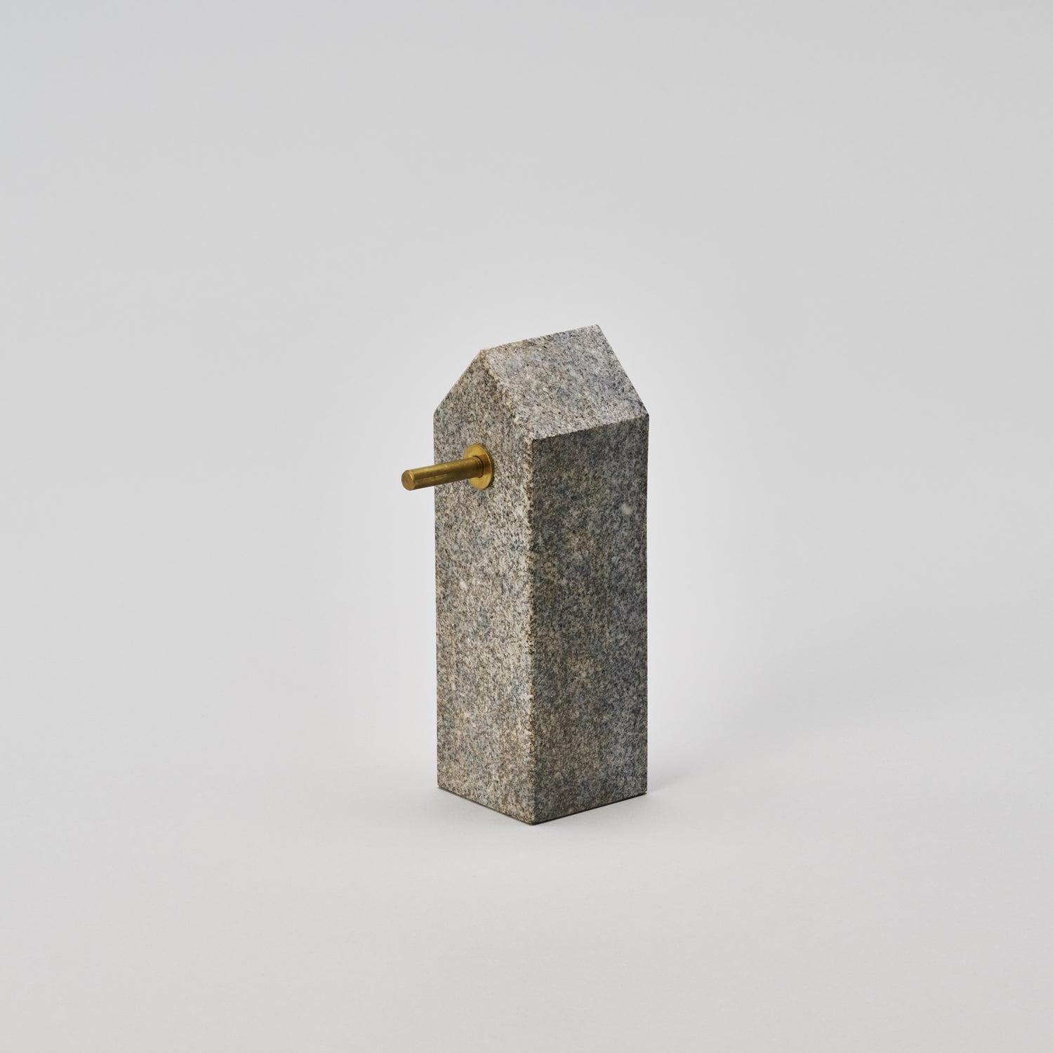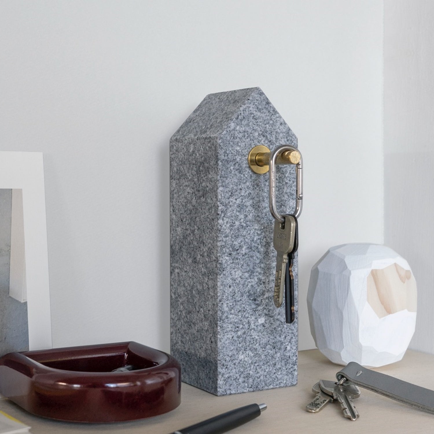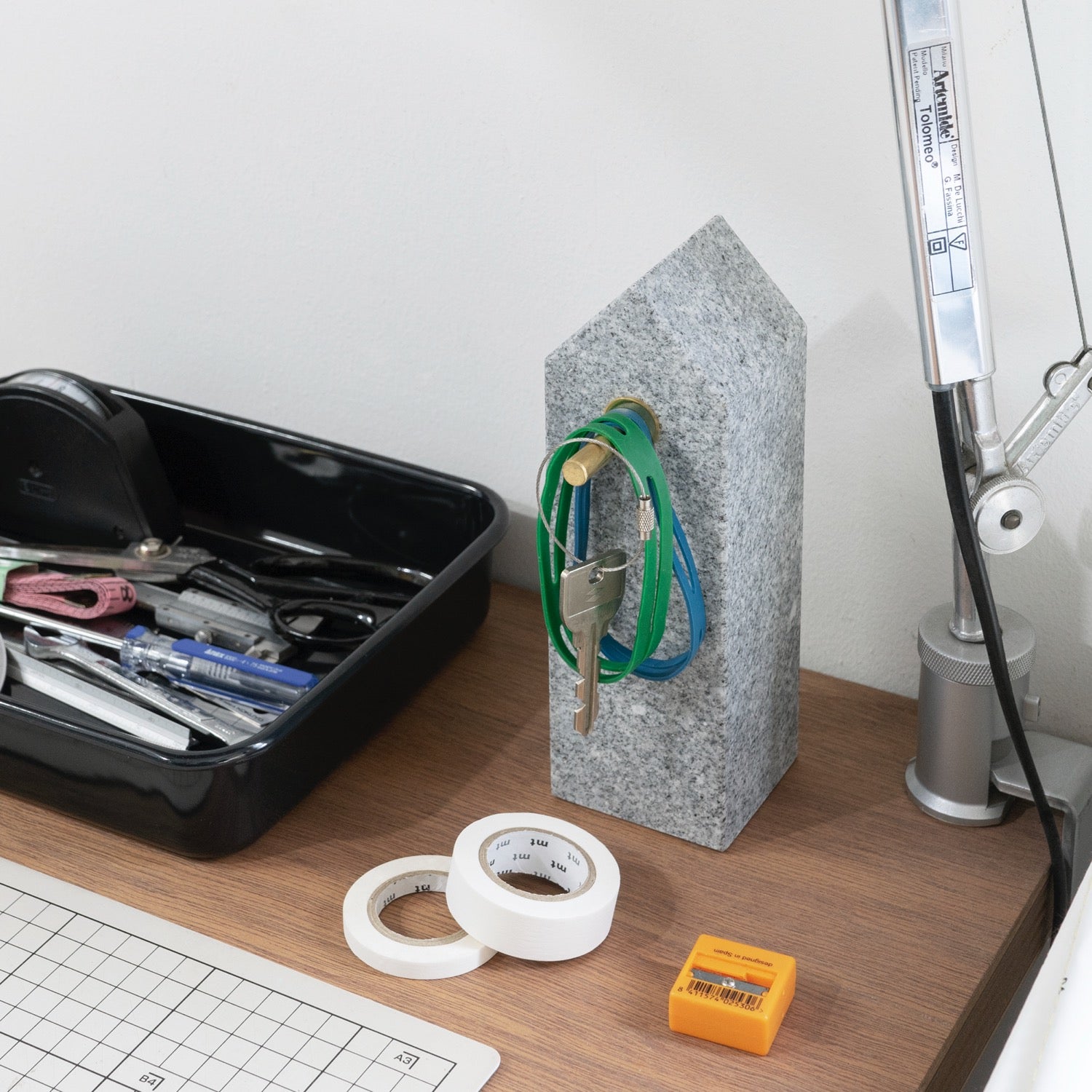 家のかたちをしたキーフックです。真鍮製のハンガーに、伴やアクセサリーをかけておく事ができます。置き型ですが、石の重さで安定感があります。